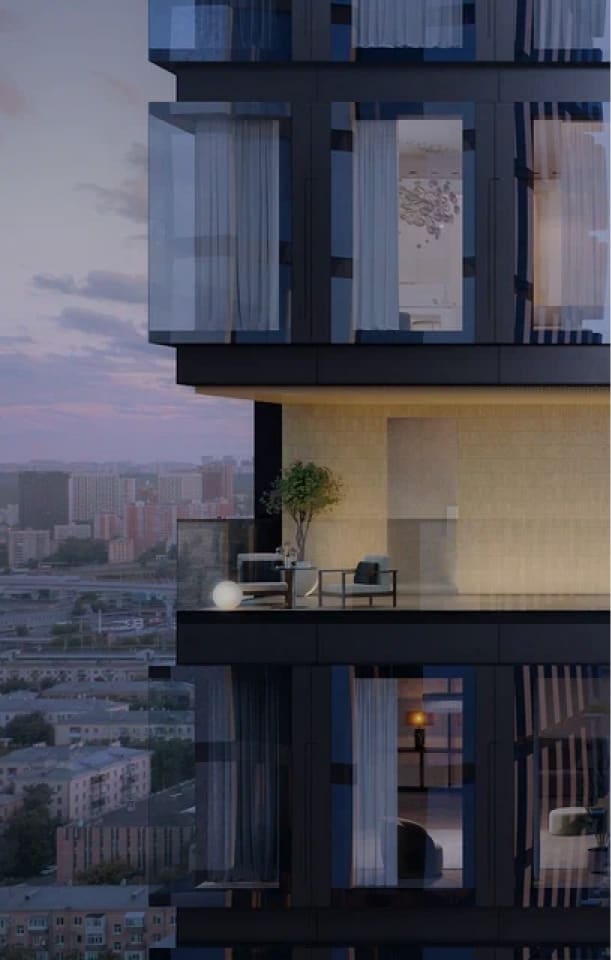 Приватные центральные башни в сердце двора-парка с разнообразными видами из панорамных окон на Москва-Сити, сталинские высотки, Москву-реку, Дом Правительства и центр города — или на тихий, красивый и просторный двор-парк.