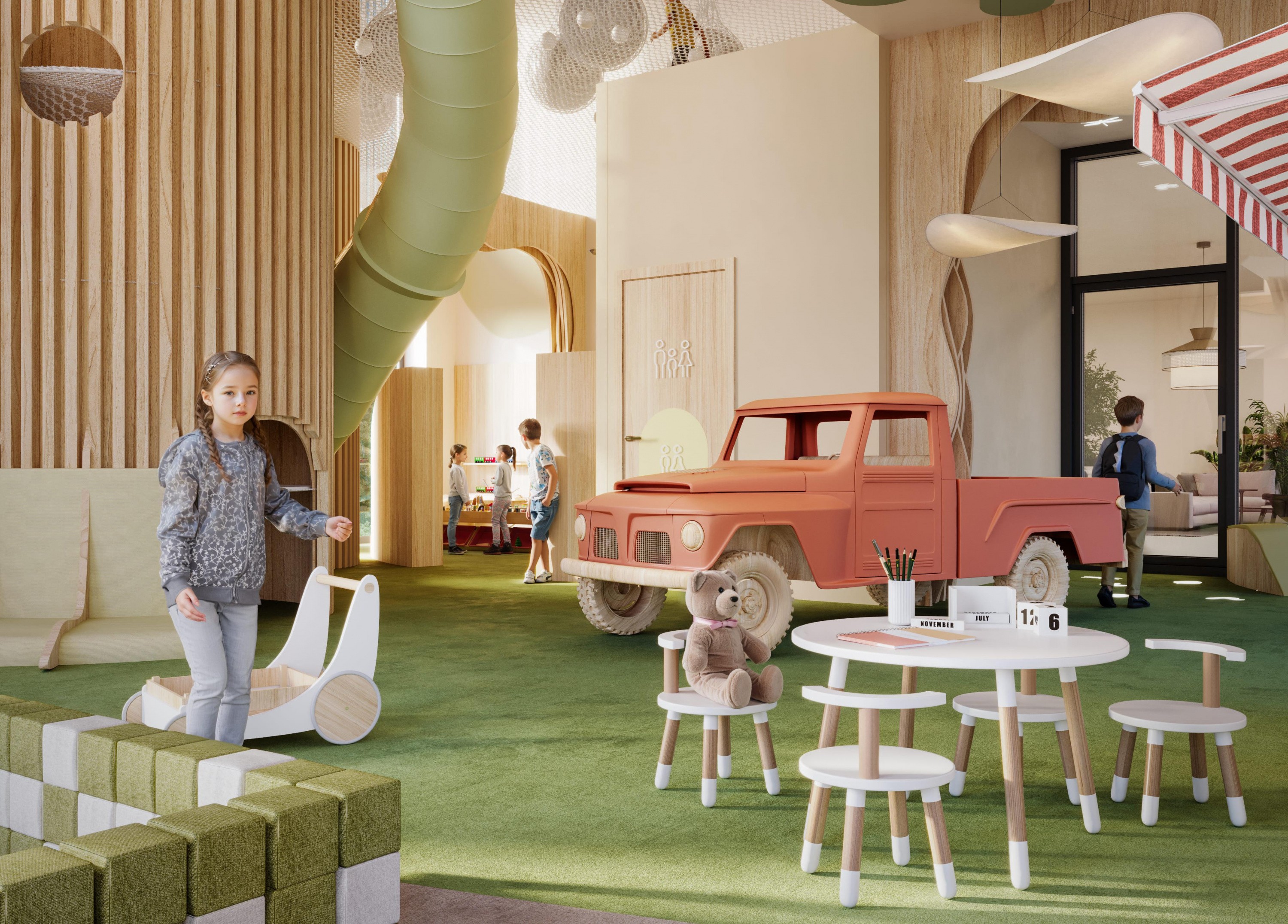 Инфраструктурное пространство в отдельном здании только для жителей, объединяющее разнообразные возможности для спорта, общения и досуга взрослых и детей всех возрастов по стандартам от Sminex: Fit Lab, Kid’s Lab, Friend’s Lab.
