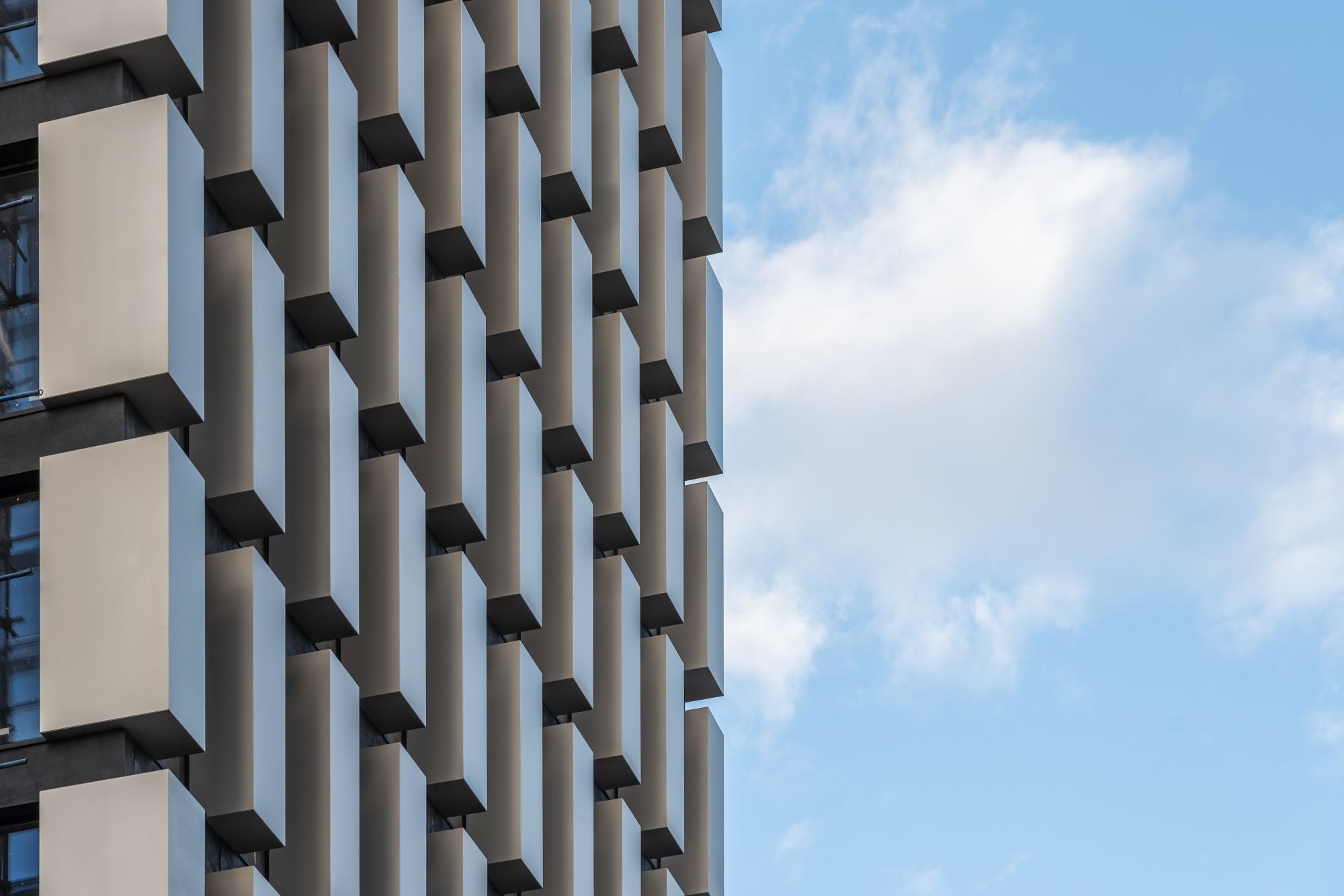 - Придаём элегантность фасадам корпусов A и B — начали монтировать декоративные элементы из стеклофибробетона.