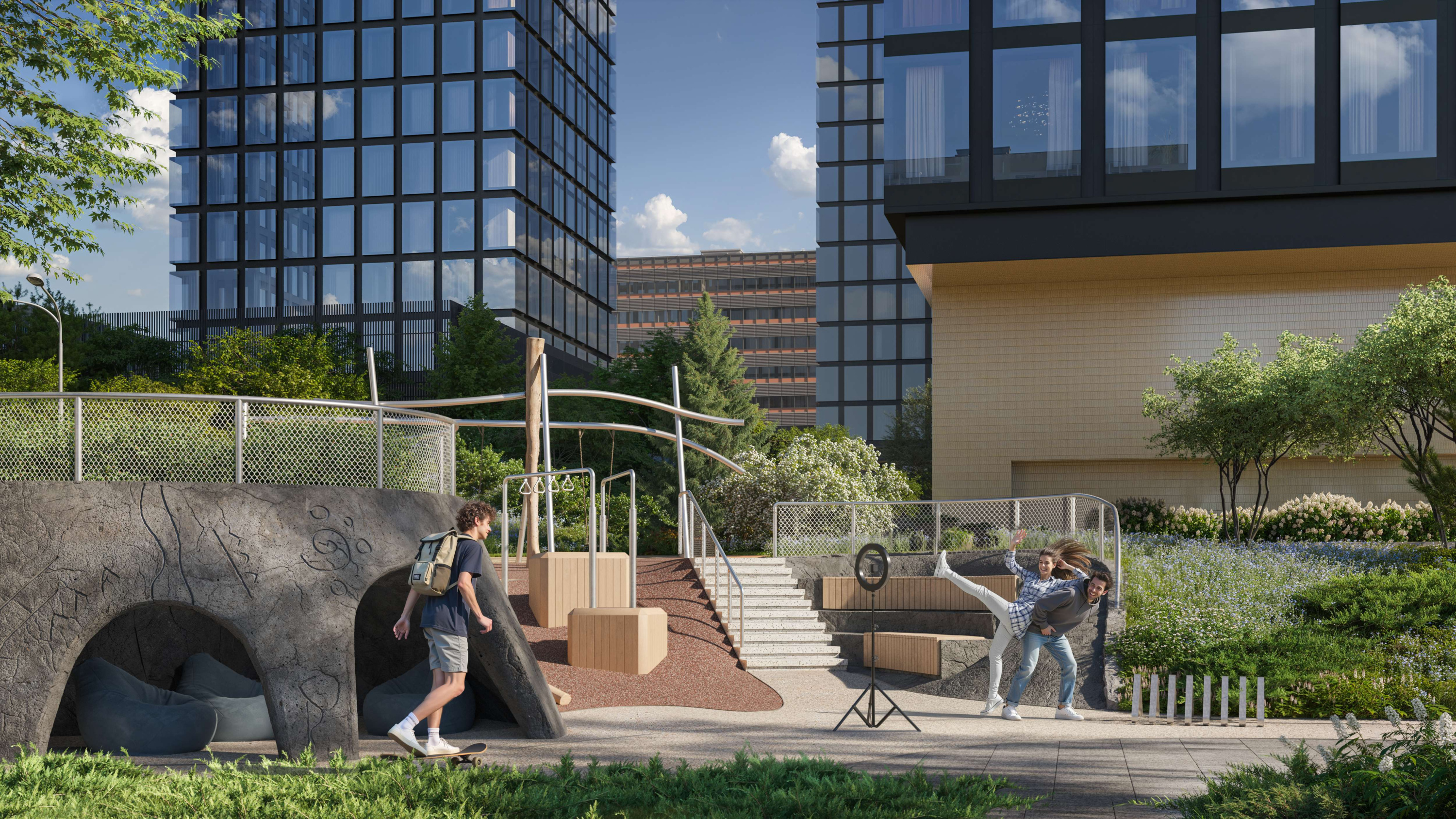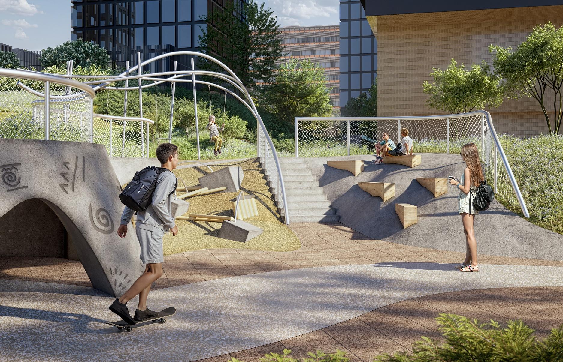 Чтобы подышать свежим воздухом и дать выход энергии, достаточно спуститься в оснащённый всем необходимым закрытый для посторонних двор-парк.