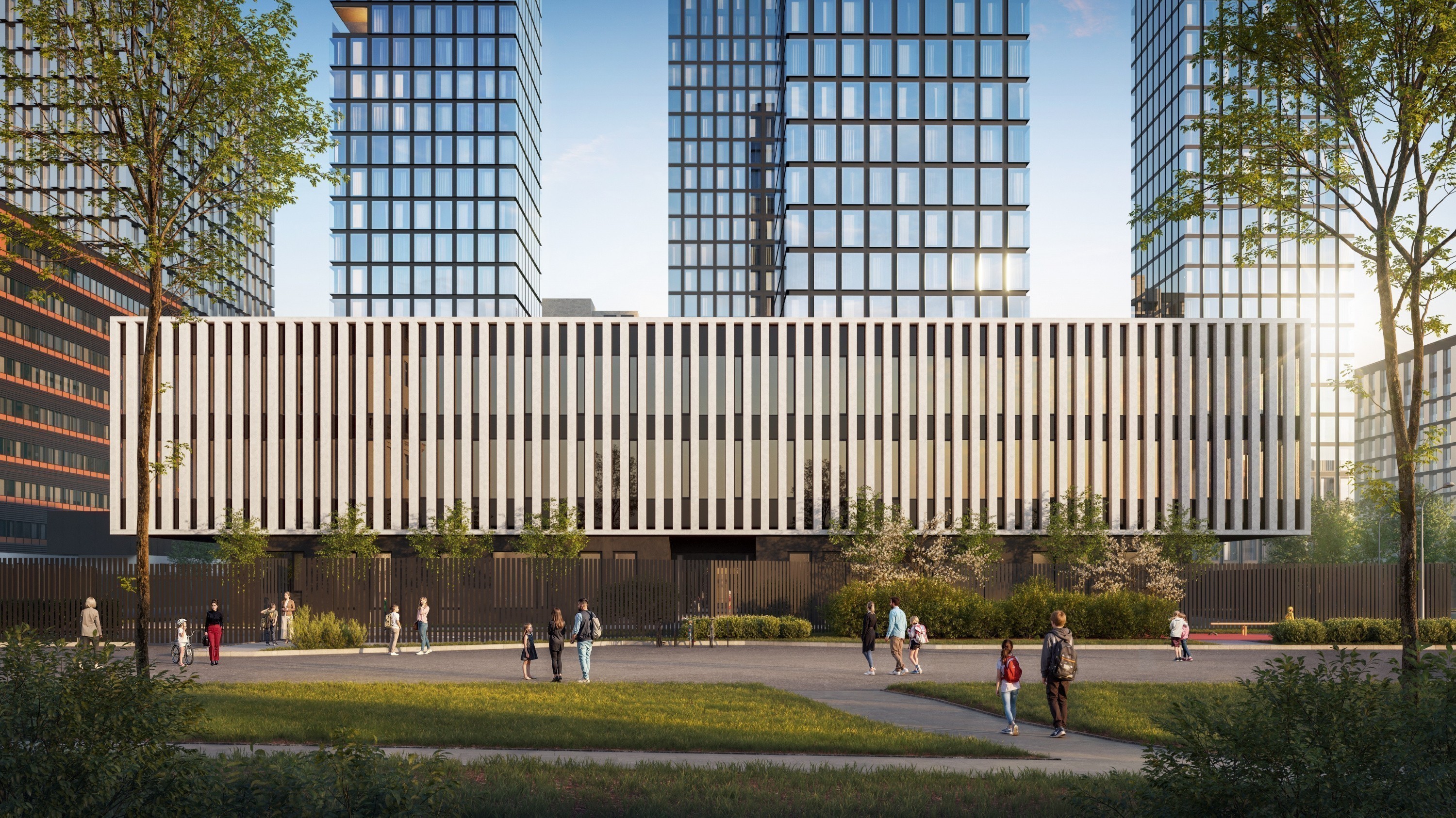 Во дворе есть площадка для командных видов спорта, воркаут-зона с многофункциональными тренажёрами, столы для пинг-понга и пространство для занятий йогой.